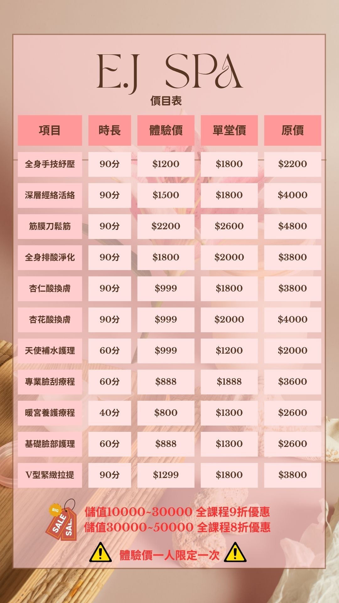 無論是紓解生活壓力、重拾光采容顏,或單純犒賞自己,EJ 邑婕 spa 工作室都希望成為您變美的路上,最溫暖的陪伴。